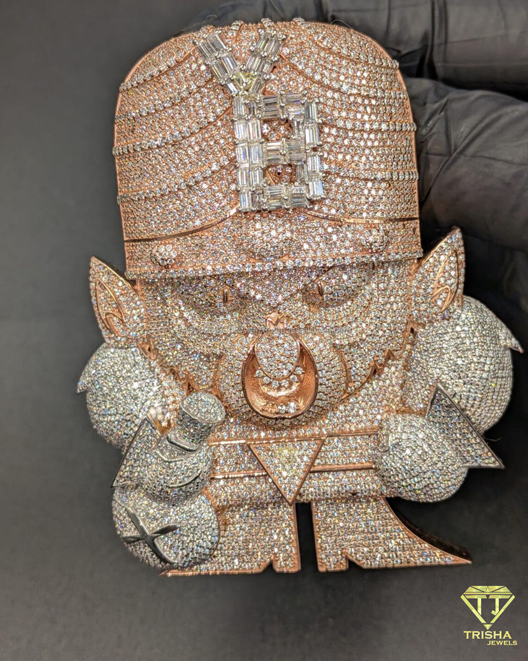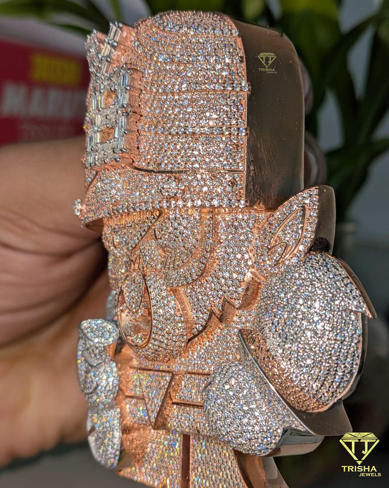 Trendy Iced Out Cartoon Face Pendant 14K Rose Gold Plated in VVS Moissanite Diamond Hip Hop Jewelry For Men