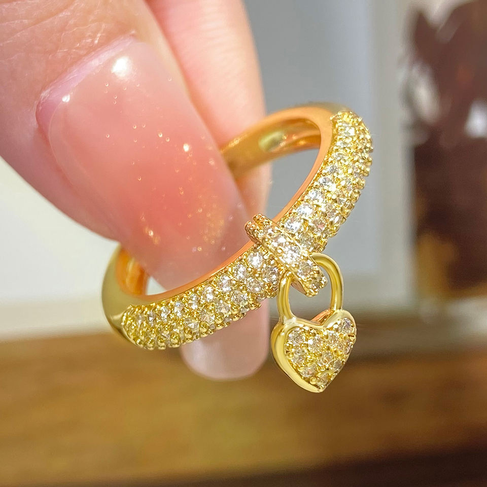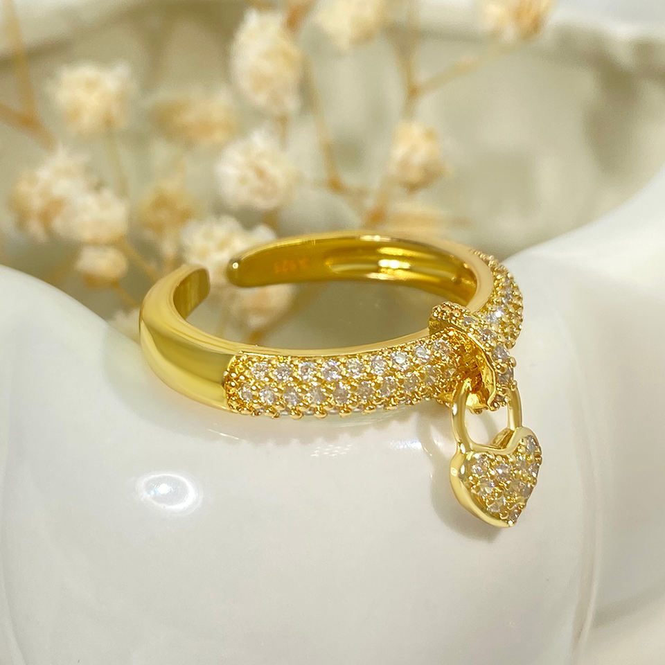 แหวนเปิดนิ้วแฟชั่นสำหรับผู้หญิง ชุบทอง 18K ทำจากทองเหลือง ประดับเพชรซิร์โคเนีย รูปหัวใจ สำหรับสาวๆ