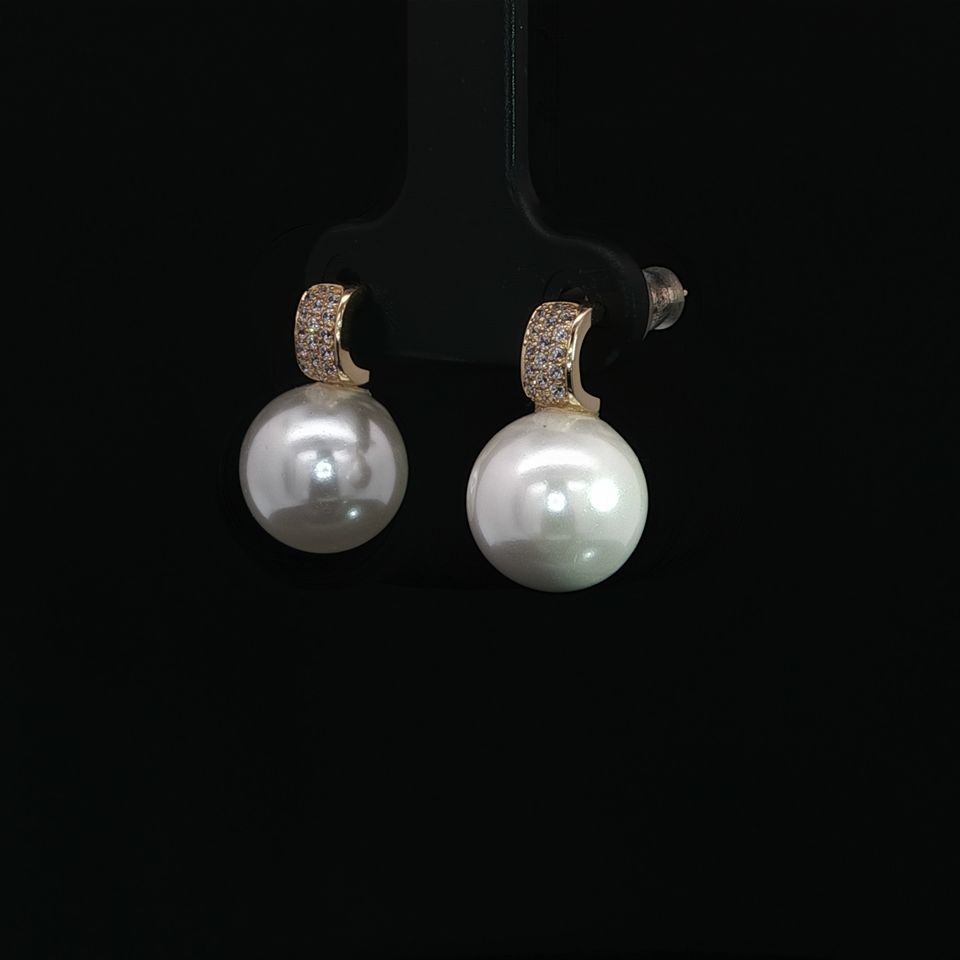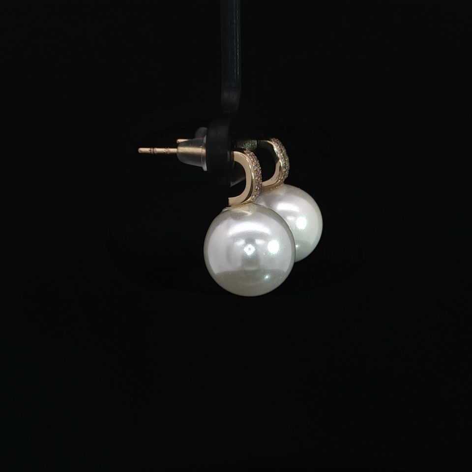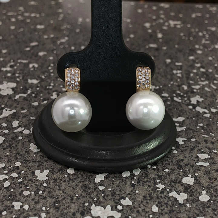 Trendy Korean Fashion Pure S925 Sterling Silver Zircon Single Round Freshwater Pear Stud Earrings for Women Girls
