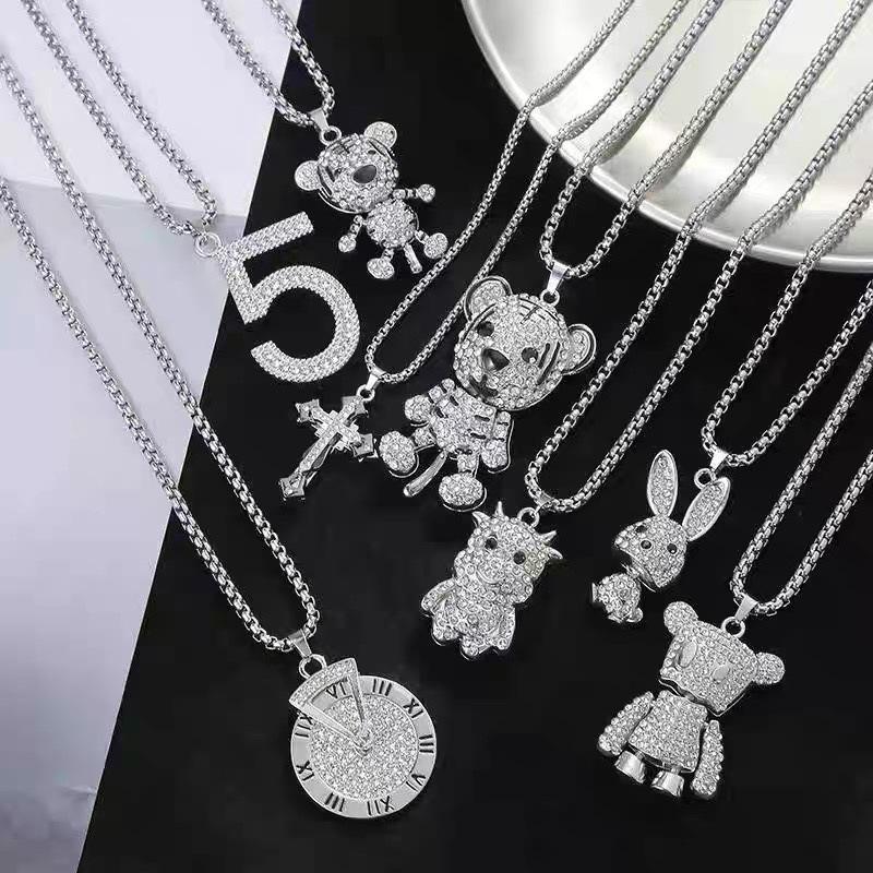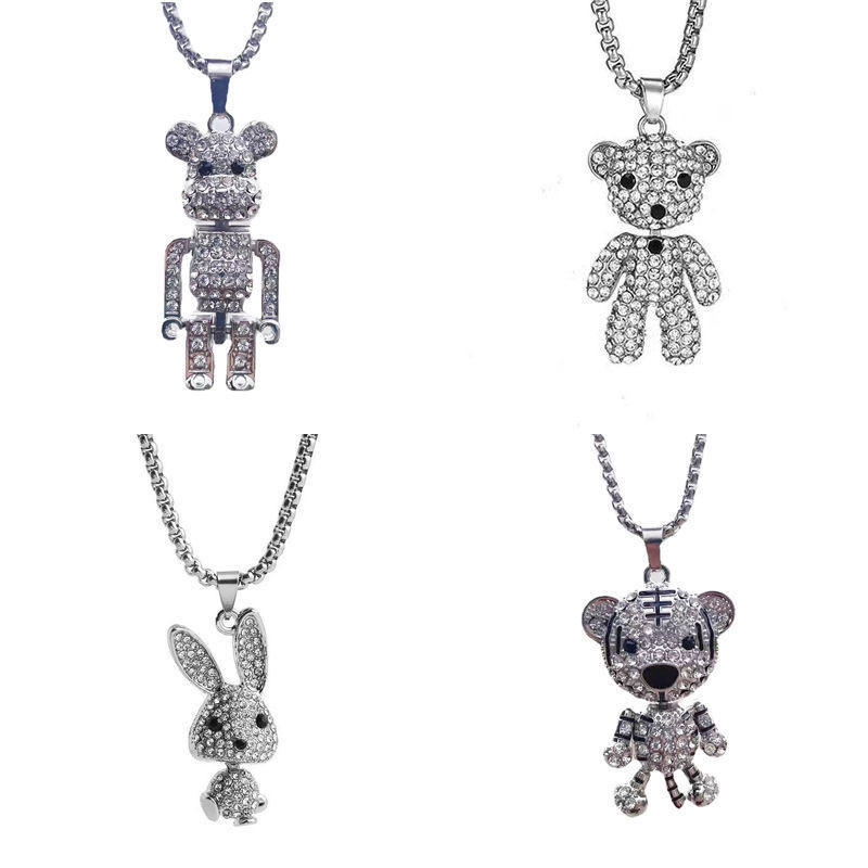 จี้แพนด้าน้อยอินเทรนด์สำหรับผู้หญิงผู้ชายฮิปฮอปลิงค์ยาวน่ารักประดับเพชรเพทายที่หุ้มด้วยเพชรที่สมบูรณ์แบบสร้อยคอเครื่องประดับ