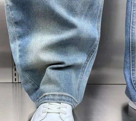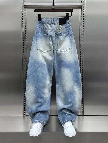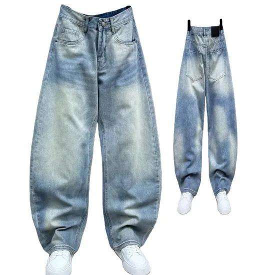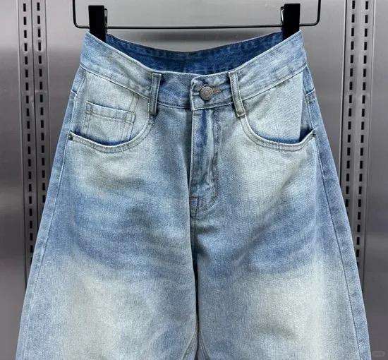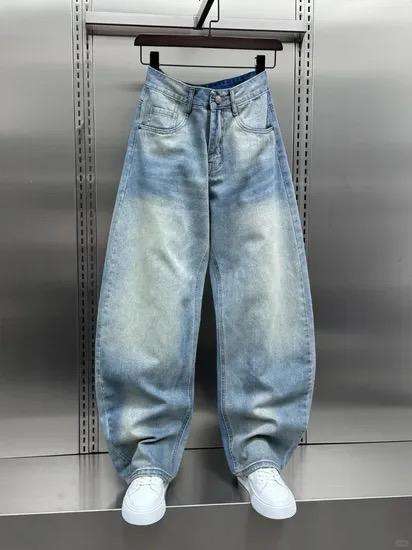 กางเกงยีนส์ซักทรงตรงตรงขากว้างกางเกงมีดโค้งทรงหลวมแนวสตรีทแบบอเมริกันทันสมัย