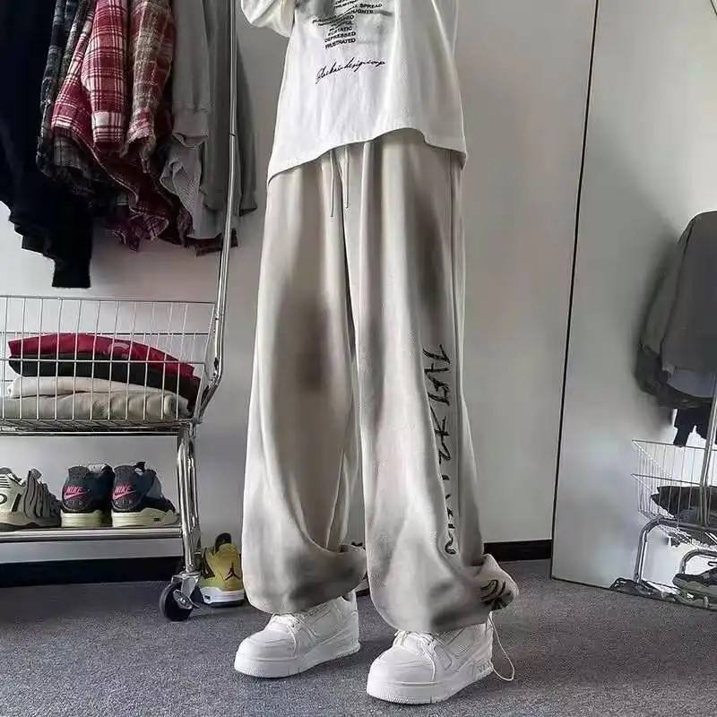 กางเกงกีฬาผ้าฝ้ายโพลีเอสเตอร์ขากว้างขาตรงลำลองมีเชือกผูกสำหรับกิจกรรมกลางแจ้งของผู้ชาย