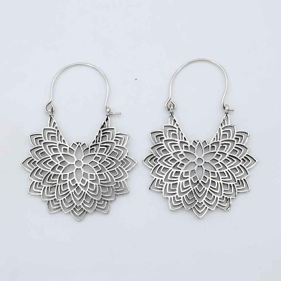 ต่างหู925ทรงกลมลายดอกบัวสุดอินเทรนด์เครื่องประดับเงินสเตอร์ลิงสีเงินแท้ห่วงเครื่องประดับชาติพันธุ์แมนดาลาอันศักดิ์สิทธิ์