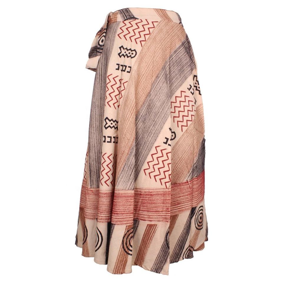 กระโปรงผ้าฝ้ายสำหรับสุภาพสตรี,พิมพ์ลายบล็อกมือ SW0414