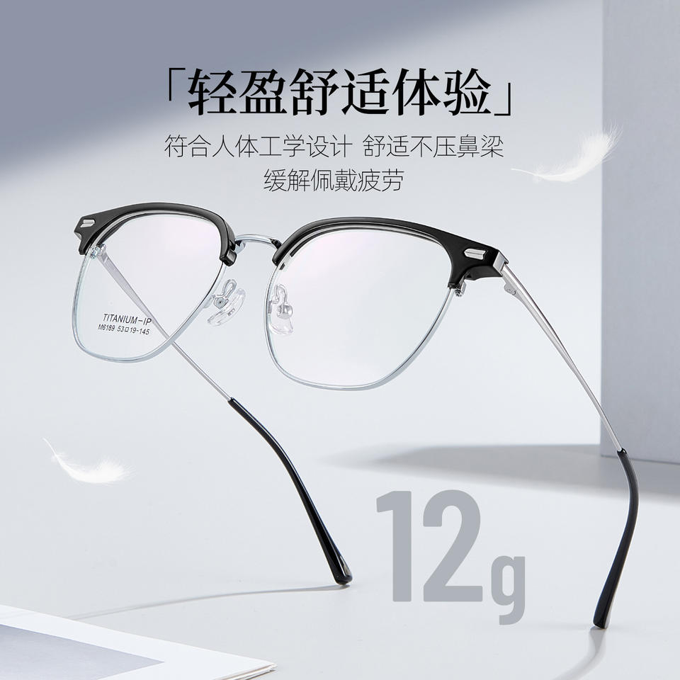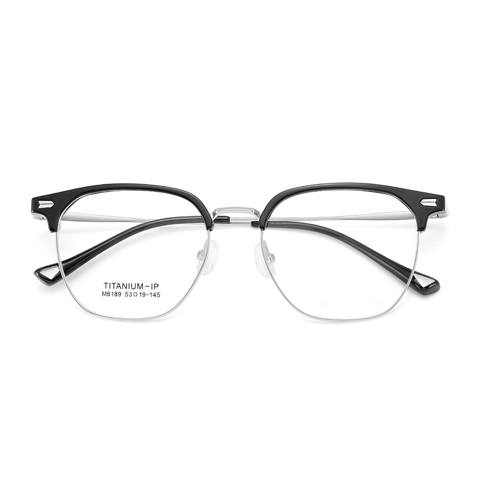 กรอบแว่นตาผู้ชายทรงครึ่งกรอบ รุ่น M6189 ไทเทเนียมเคลือบ IP กรอบขนาดกลาง เลนส์อะคริลิก แว่นสายตา