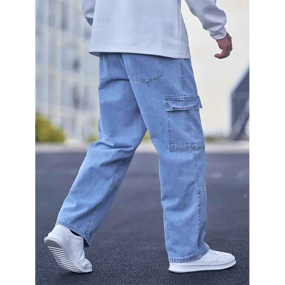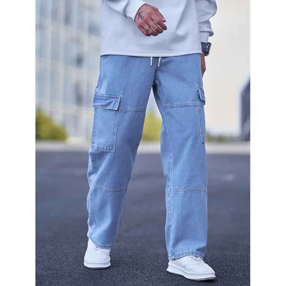 กางเกงยีนส์คาร์โก้ผู้ชายทันสมัยทรงหลวมทนทานกางเกงยีนส์กระเป๋ายูทิลิตี้สำหรับฮิปฮอปโกธิคปาร์ตี้ผจญภัยกลางแจ้งชุดทำงาน