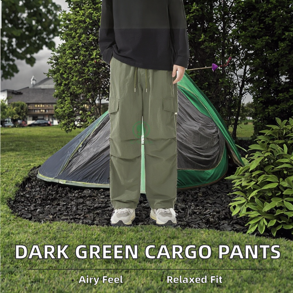 กางเกงจ็อกเกอร์ลำลองสำหรับผู้ชายทันสมัยโอเวอร์ไซส์ทรงหลวมสีเขียวเข้มกระเป๋าตรงกลางมีกระเป๋าผ้าย้อม