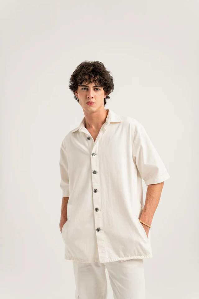 เสื้อเชิ้ตยีนส์ผู้ชายสุดเทรนดี้ แขนสั้น สไตล์ลำลองสุดเท่ พร้อมผ้าแห้งเร็วเป็นมิตรกับสิ่งแวดล้อมสำหรับฤดูร้อน