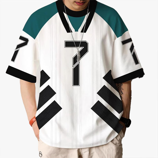 เสื้อยืดคอกลมพิมพ์ลายซีรีส์เสื้อเจอร์ซีย์ตัวเลขดิจิตอล 3 มิติแฟชั่นสำหรับผู้ชายอินเทรนด์สำหรับสวมใส่กลางแจ้ง