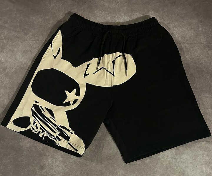 กางเกงขาสั้นผ้าฝ้ายระบายอากาศมีกระเป๋าพิมพ์ลายกราฟิกสำหรับผู้ชายกางเกงวอร์มแฟชั่นแนวสตรีทสำหรับฤดูร้อน