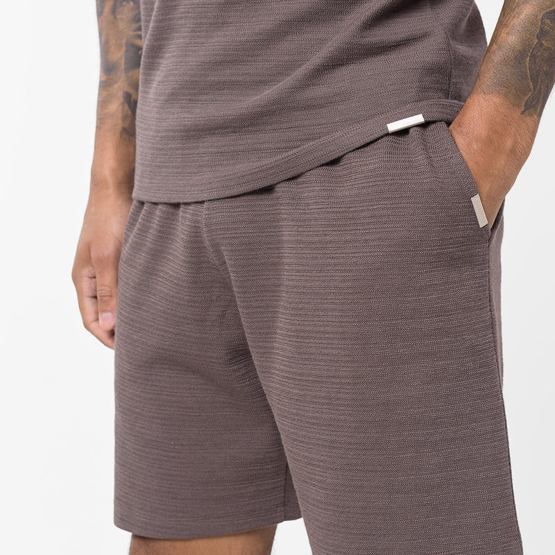 ชุดเซ็ตเสื้อถักนิตติ้งผู้ชายสุดเทรนดี้ เสื้อโปโลคอซิป แขนสั้น ผ้ามีเท็กซ์เจอร์ สำหรับฤดูร้อน พร้อมกางเกงขาสั้นเอวยางยืด สไตล์หรูหรา พรีเมียม