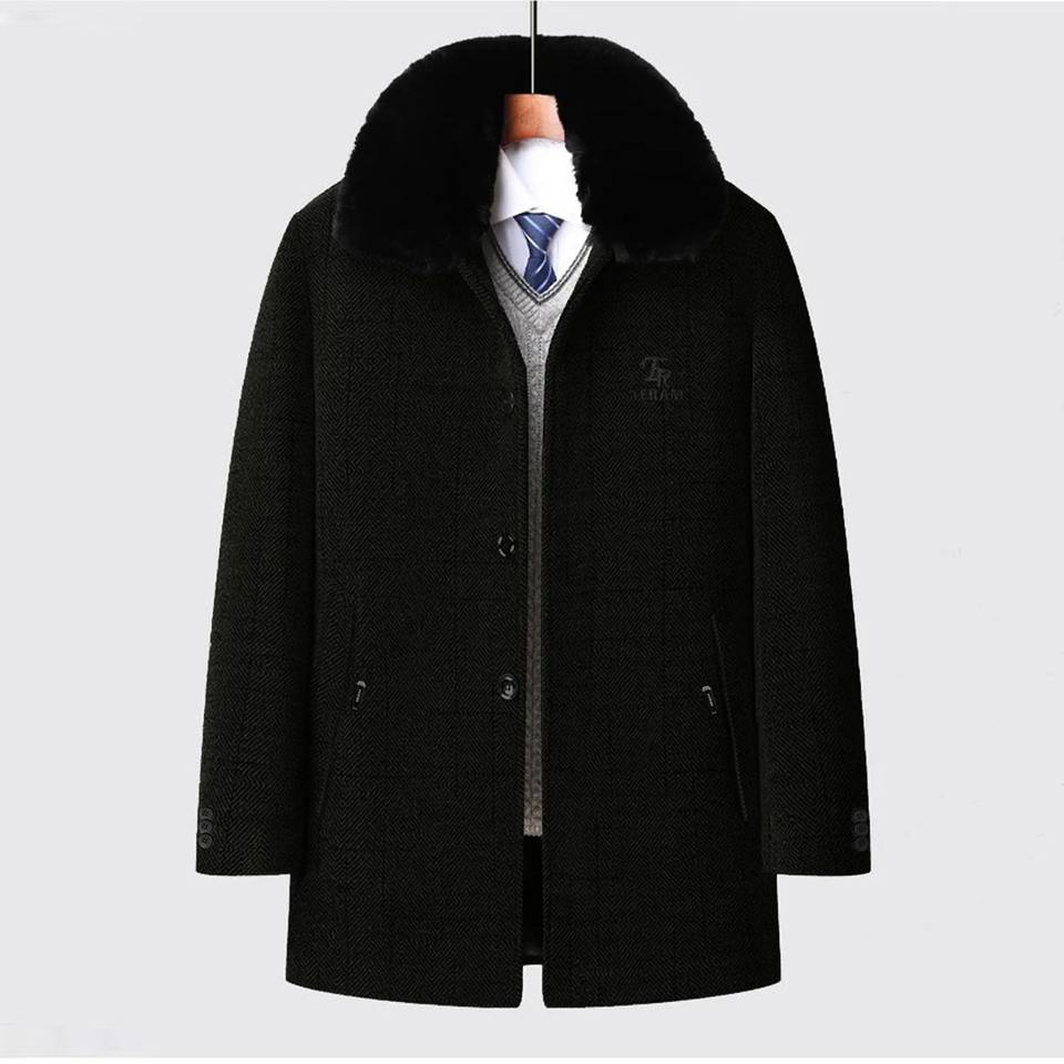 เสื้อโค้ทขนสัตว์ยาวสำหรับผู้ชาย ทันสมัย เป็นมิตรกับสิ่งแวดล้อม เหมาะสำหรับฤดูหนาว ให้ความอบอุ่นอย่างดี ดีไซน์หรูหรา ทันสมัย ทรงพอดีตัว เหมาะสำหรับใส่ไปทำงาน ใส่ลำลอง หรือใส่ในชีวิตประจำวัน