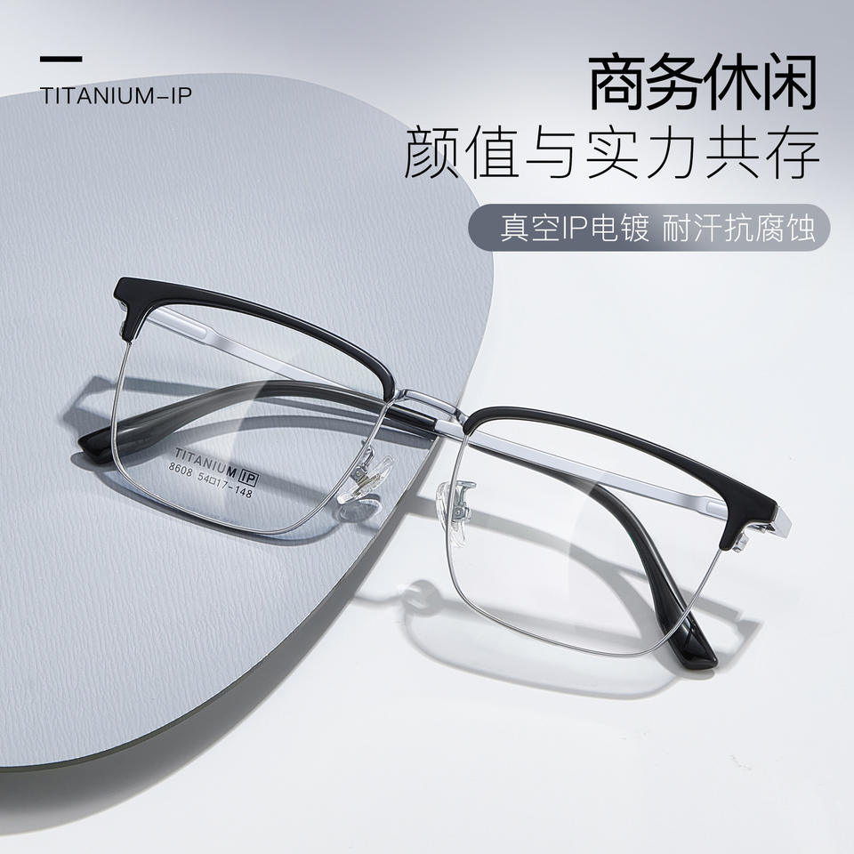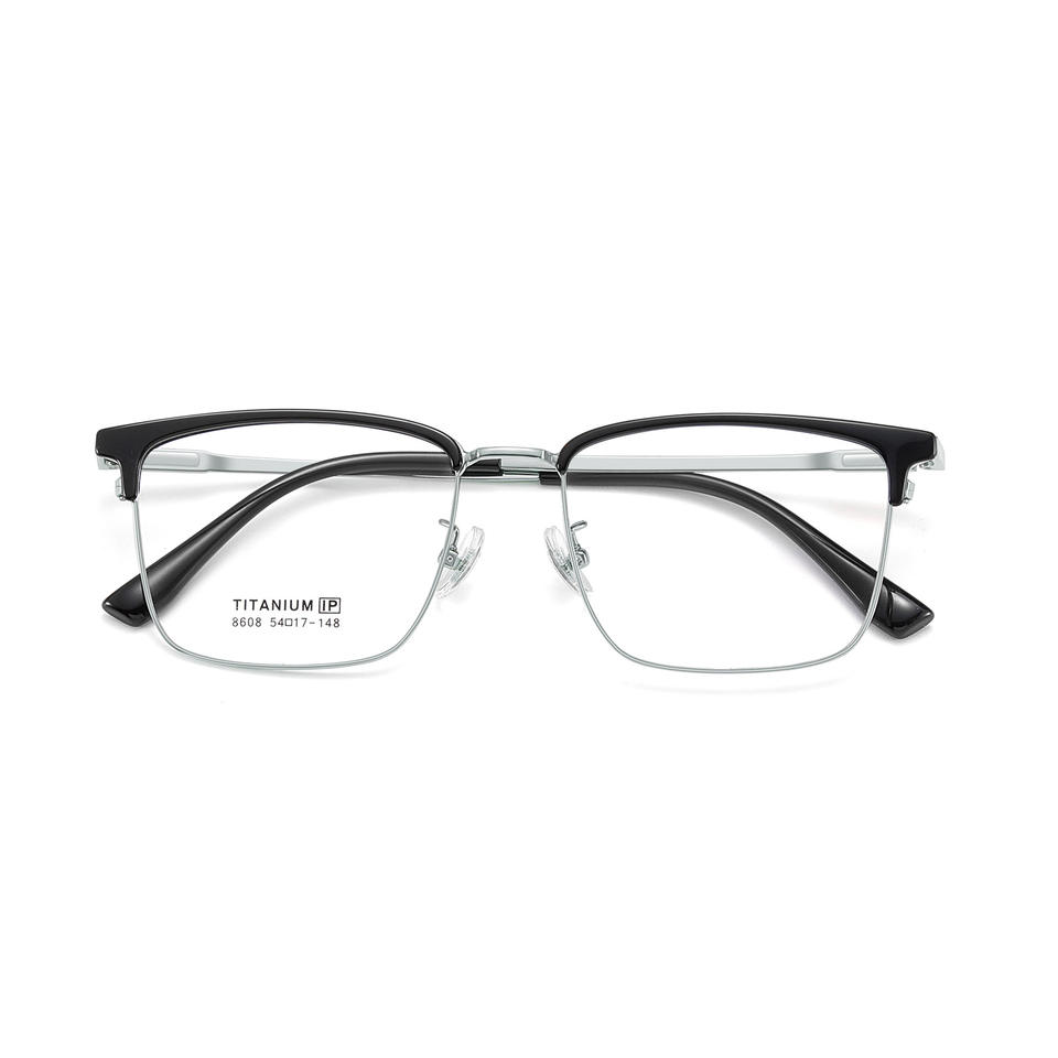 กรอบแว่นตาไทเทเนียมทรงสี่เหลี่ยมผืนผ้าสำหรับผู้ชายรุ่นทันสมัย 8608 น้ำหนักเบา เลนส์อะคริลิกเต็มกรอบ ผลิตที่ตานหยาง
