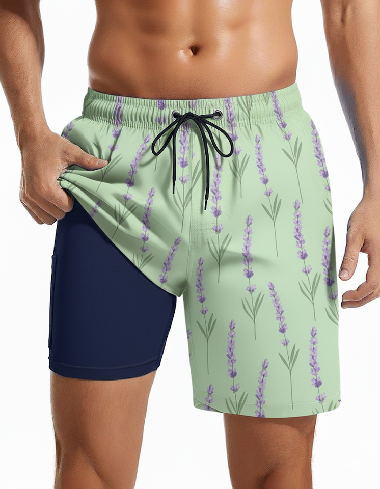 กางเกงว่ายน้ำขาสั้นผู้ชายทันสมัยพิมพ์ลายดิจิตอลผ้าสแปนเด็กซ์/ โพลีเอสเตอร์น้ำหนักเบากันยูวีออกแบบโลโก้ได้ตามต้องการ
