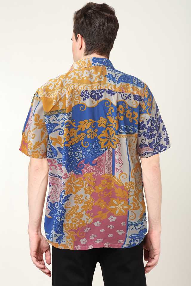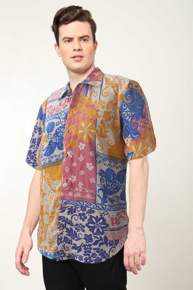 เสื้อเชิ้ตผู้ชายแฟชั่น พิมพ์ลายดอกไม้หลากสี ผ้าโพลีเอสเตอร์ ทรงปกติ คอปกเสื้อ แขนสั้น สำหรับใส่ลำลอง
