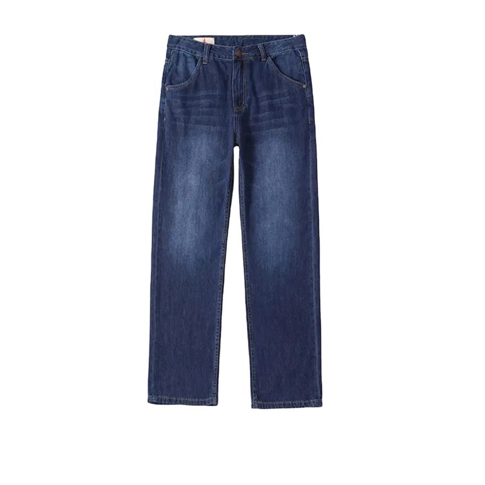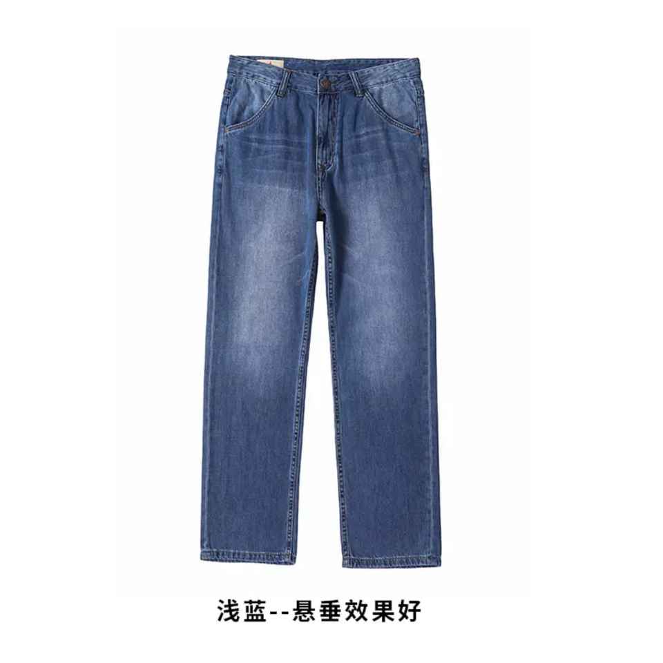 กางเกงยีนส์ขาตรงสำหรับผู้ชาย, กางเกงยีนส์ผ้าฝ้าย100% สไตล์ฮิปฮอปวินเทจใส่สบายทันสมัย