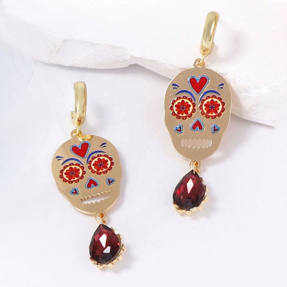 ต่างหูทรงหยดน้ำประดับเพชรซิคอนแบบไมโครเพฟทันสมัย สีเมทัลลิกลายหัวกะโหลกสำหรับผู้หญิง เหมาะเป็นของขวัญสำหรับวันหยุด