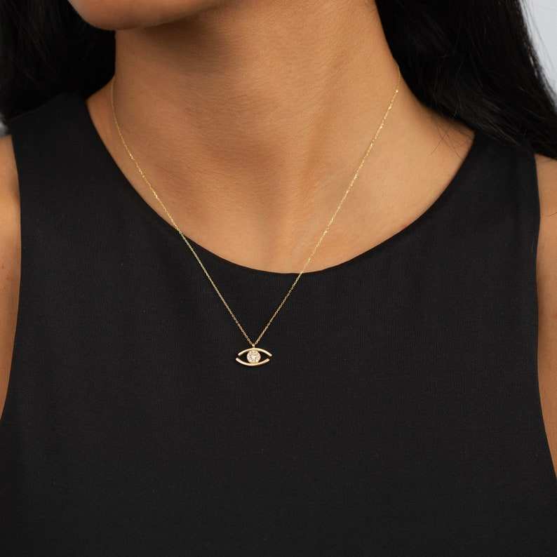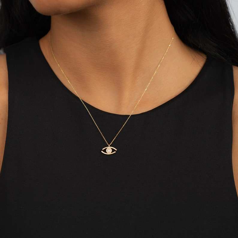 เครื่องประดับที่เรียบง่ายทันสมัย18K สร้อยคอทองตาปีศาจพร้อมจี้เพชรแท้สร้อยคอแฟชั่นผู้หญิง