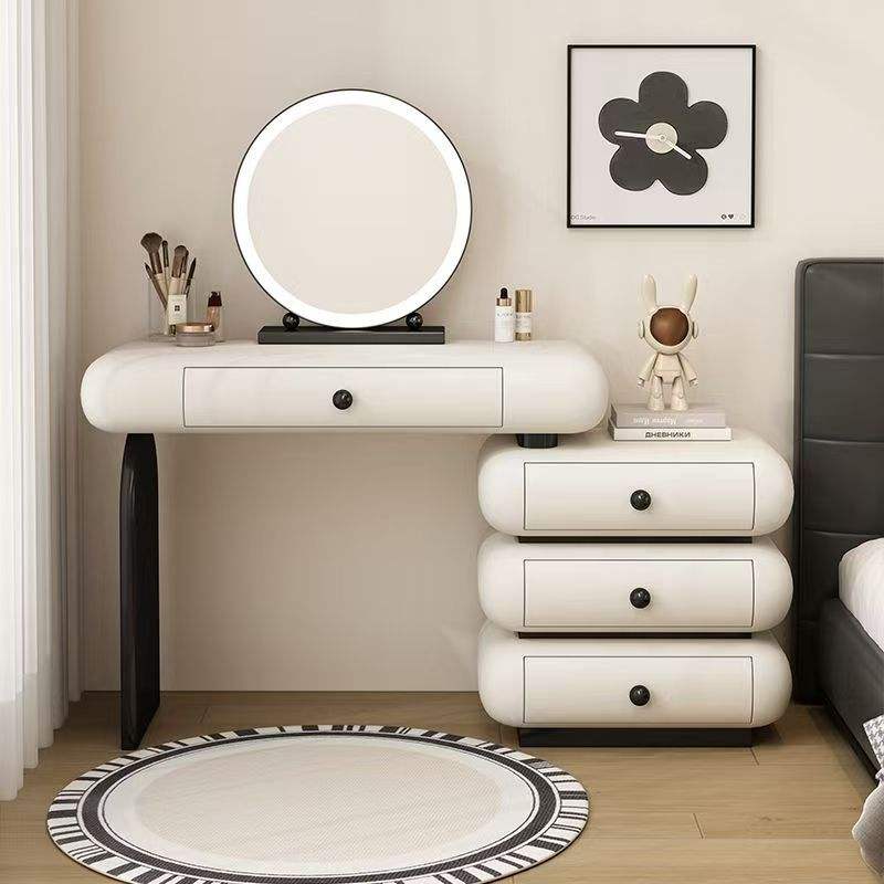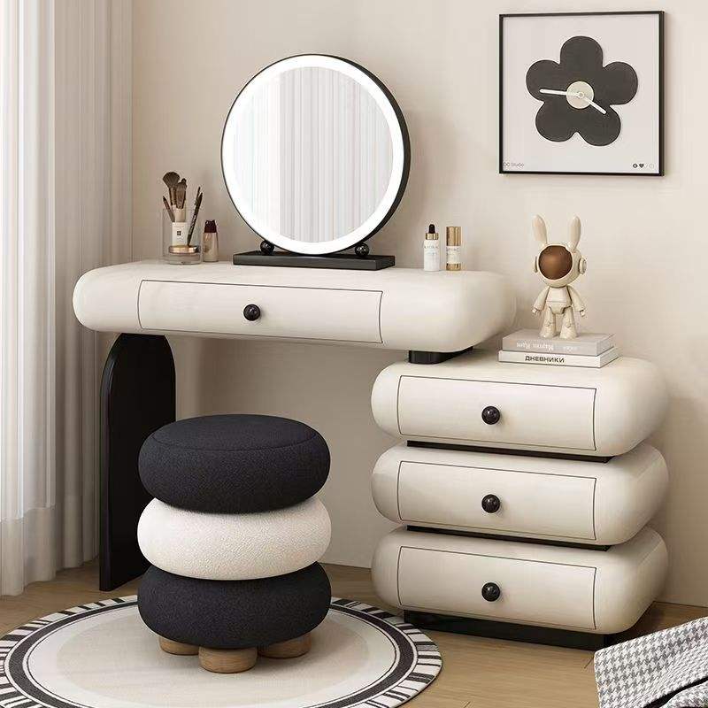 Trendy Modern Cartoon-Inspired Solid Wood Dressing Table Lighted Mirror Storage Multiple Stool Options Available for Bedroom
