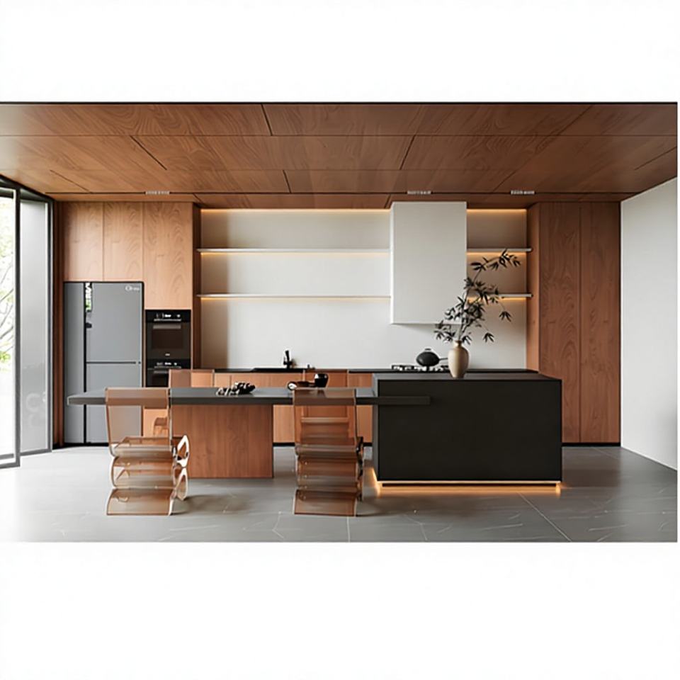 Trendy Modern Design Plywood Chipboard MDF Modular Kitchen Cabinets with Drawer Faucet Hinge Sink for Dining Room