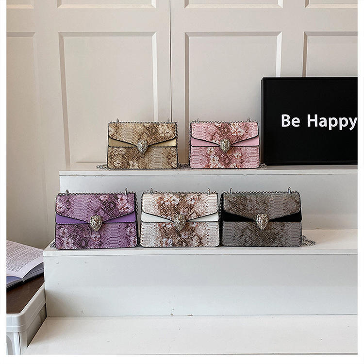 Trendy Niche Design Women Bags Retro Minimalist Shoulder Bag Stylish Snake-Print Women Chain-Strap Mini Square Shoulder Bag