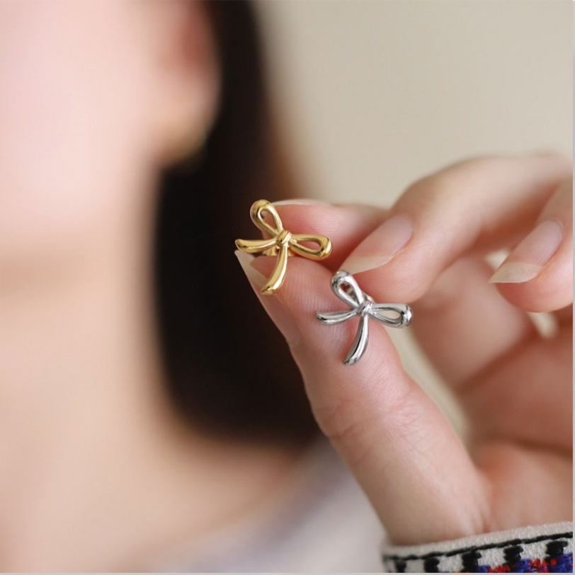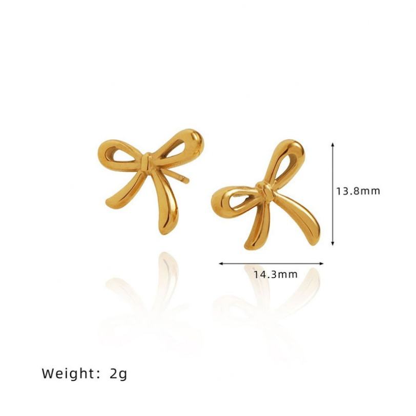 ต่างหูแฟชั่นเก๋ไก๋ ไม่ลอก ไม่ดำ 14k 18k ชุบทอง PVD สแตนเลส 316l เครื่องประดับคุณภาพดี ต่างหูรูปโบว์สำหรับผู้หญิง