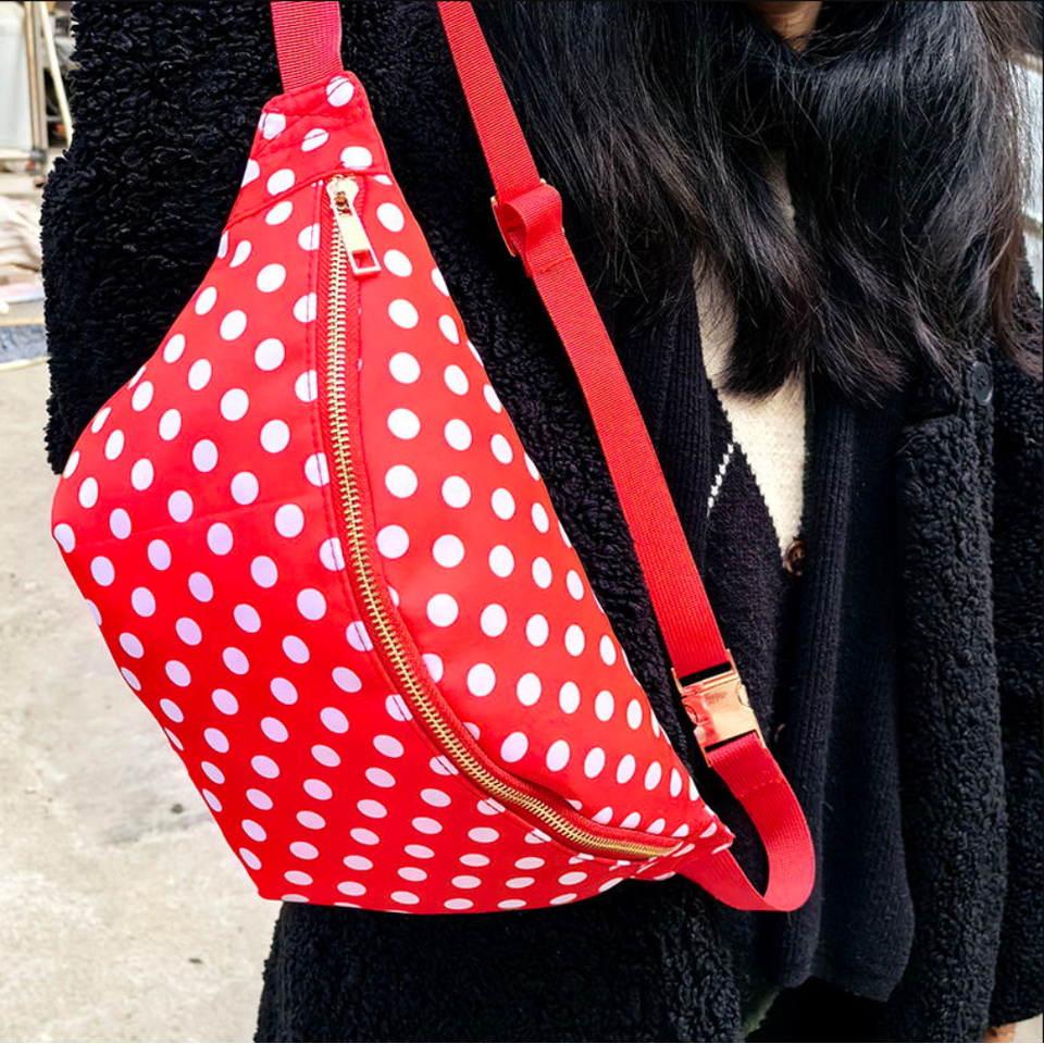 กระเป๋าคาดเอวไนล่อนกันน้ำทันสมัยกระเป๋าคาดเอวลายจุดมีซิปออกแบบโลโก้ได้ตามต้องการ