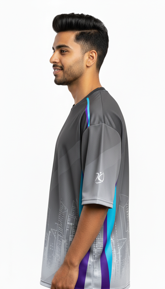 เสื้อยืดโอเวอร์ไซส์เทรนดี้ พิมพ์ลายแบบซับลิเมชั่น แฟชั่นสตรีทแวร์ลำลองสำหรับผู้ชาย สไตล์คนเมือง