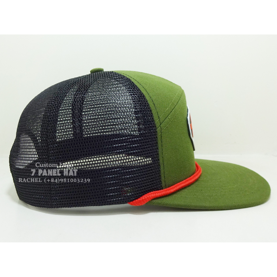 หมวกถักโลโก้ยางพีวีซีทันสมัยสำหรับทรูเกอร์มี7แผงหมวกแบบปีกแบนพิมพ์ลายเทปด้านในปรับได้หมวกใช้ได้ทั้งชายและหญิง