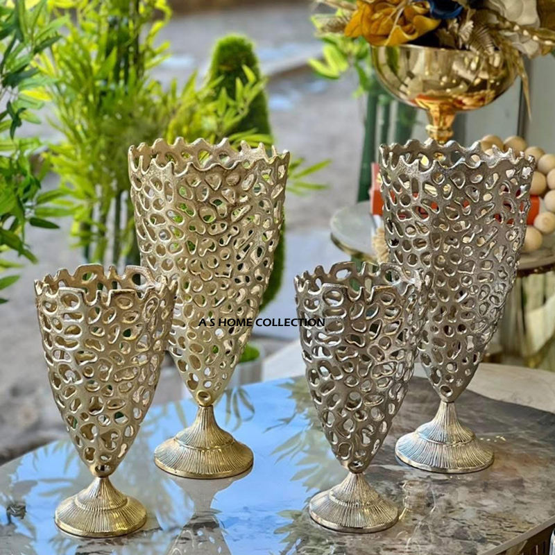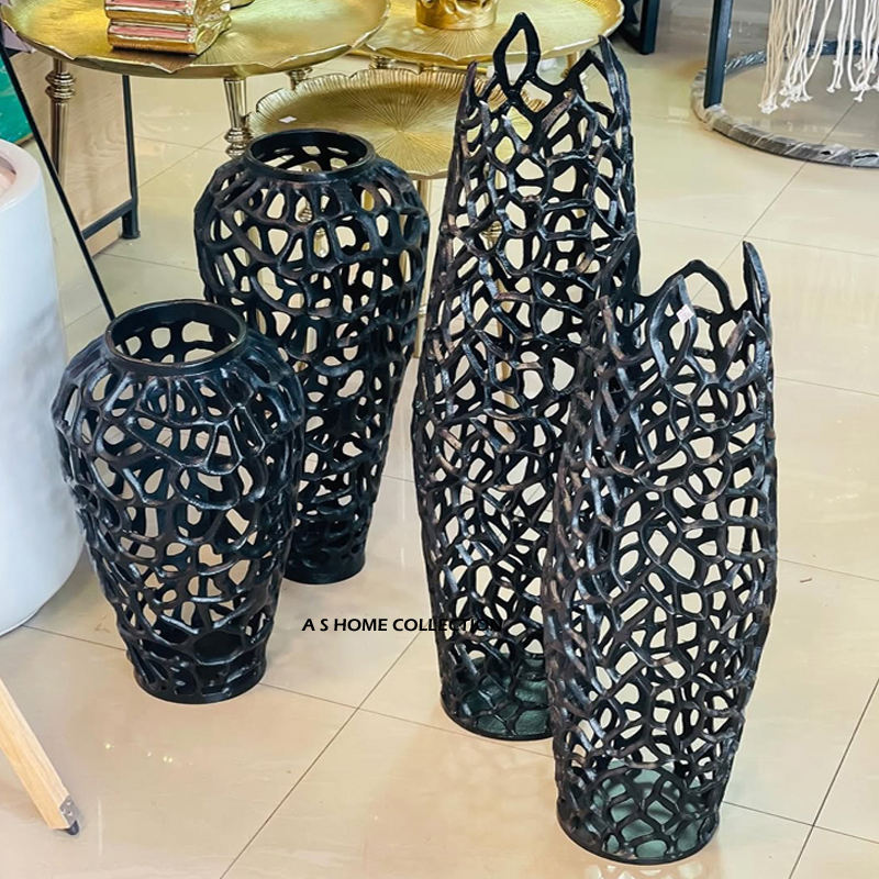 ชุดแจกันดอกไม้โลหะอลูมิเนียมสีดำมี4ชิ้นสำหรับตกแต่งงานแต่งงาน