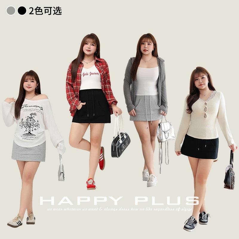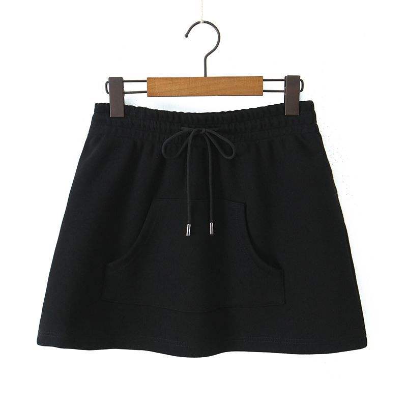 กระโปรงมินิสั้นเอวยางยืดสีดำสำหรับผู้หญิงอ้วน รุ่น N9112 ทรงหลวมสบายๆ