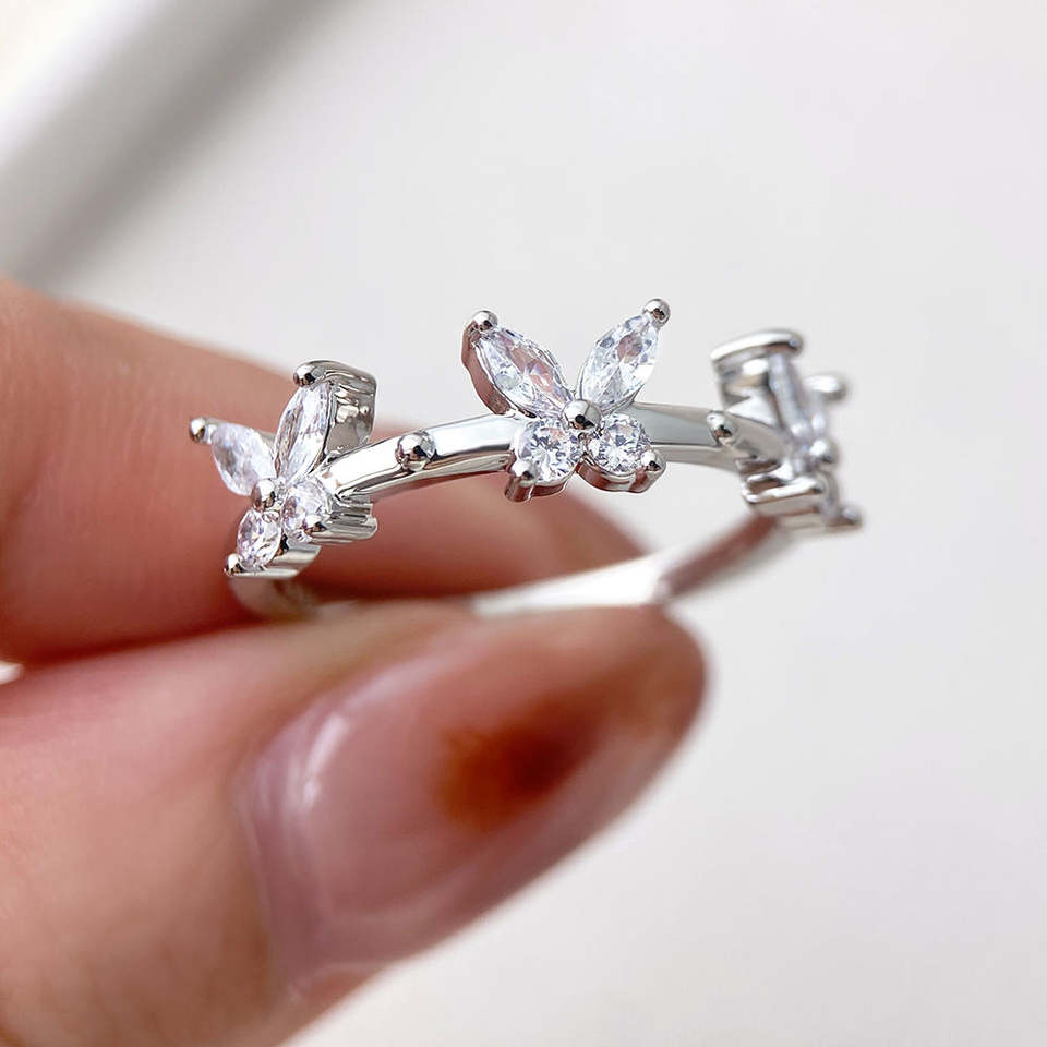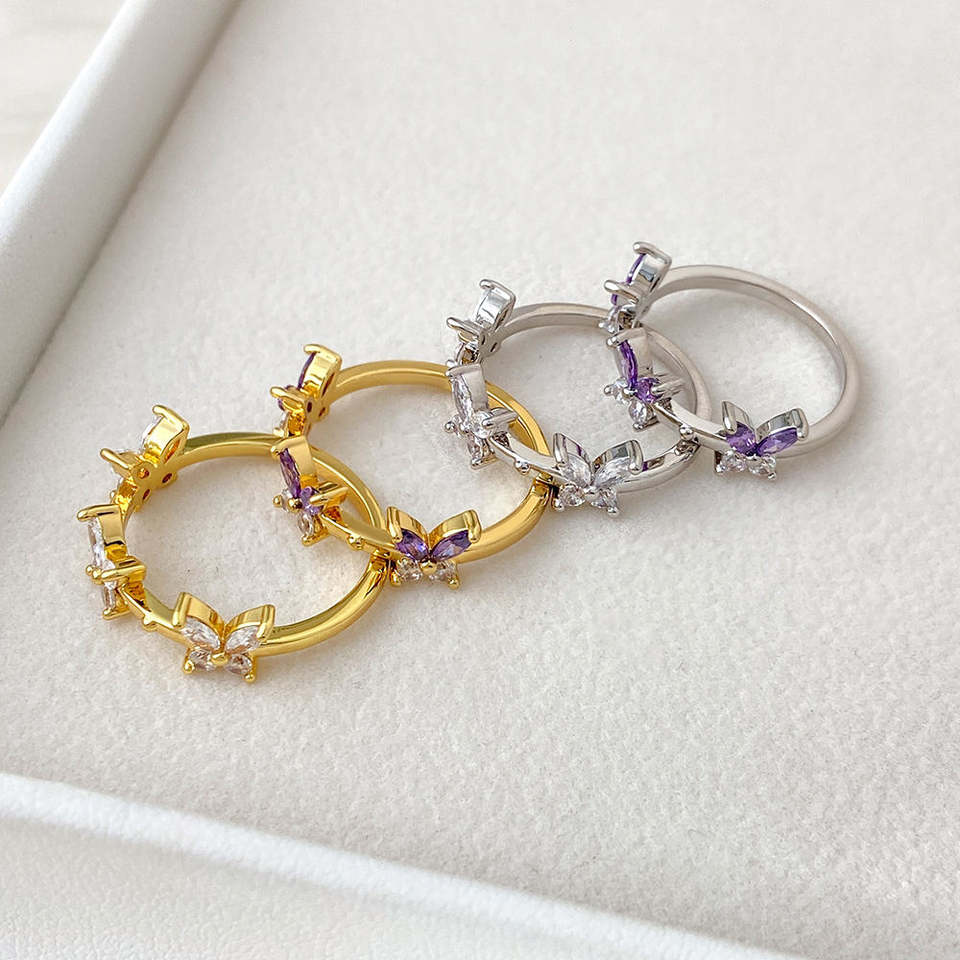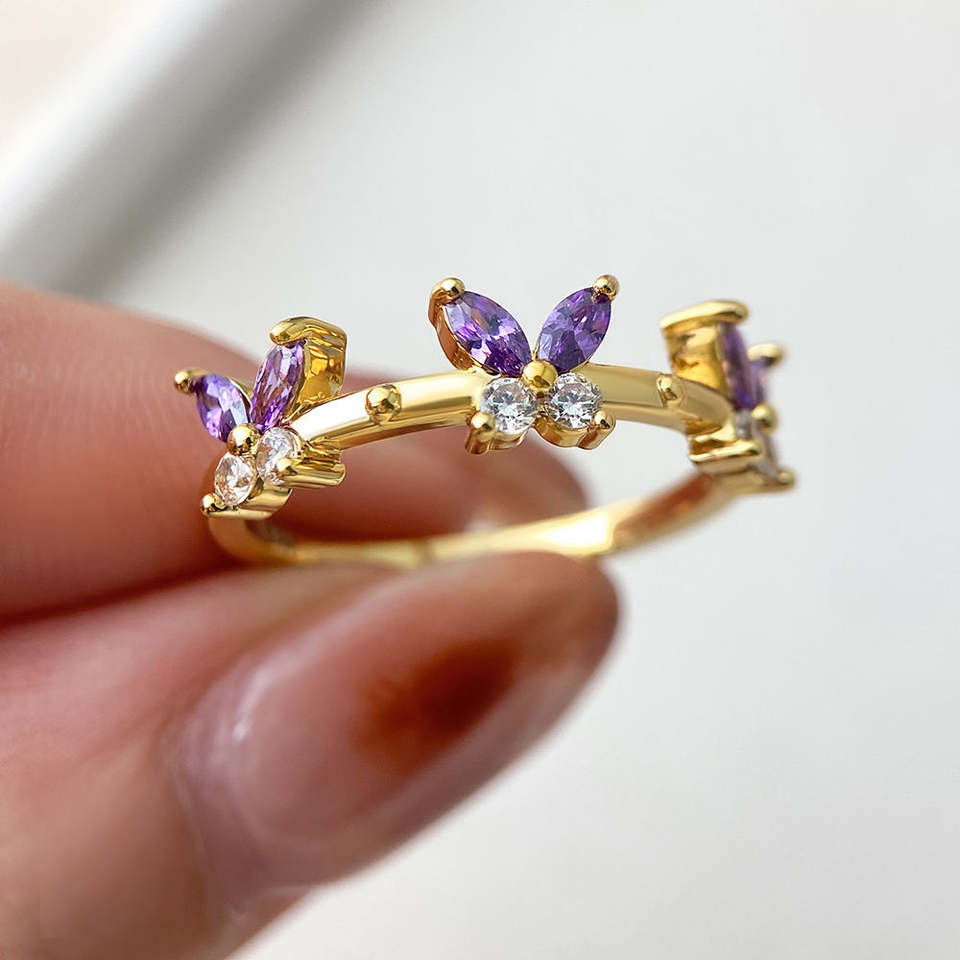 Trendy Purple Butterfly Design Marquise Brilliant Cut Flower Silver Zircon Diamond Engagement Eternity Wedding Band for Women