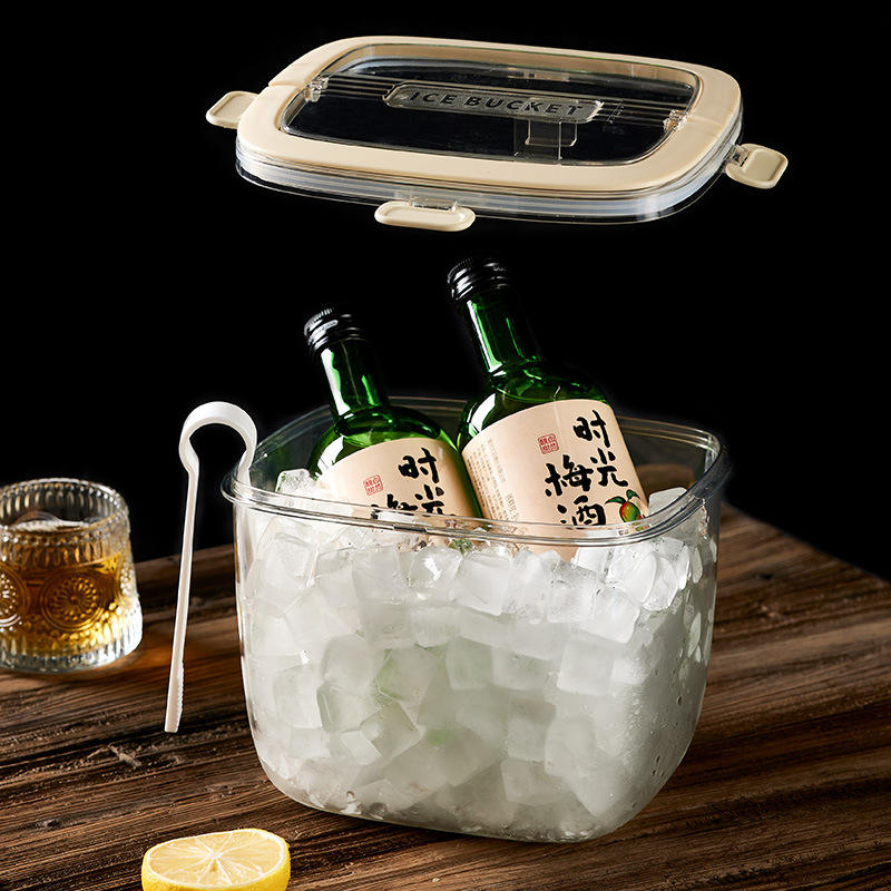 ถังน้ำแข็งทรงสี่เหลี่ยมทันสมัย พลาสติกใสปิดผนึก สำหรับปาร์ตี้ เบียร์ แชมเปญ ใช้ในบ้าน สไตล์เรียบง่ายทันสมัย BT01