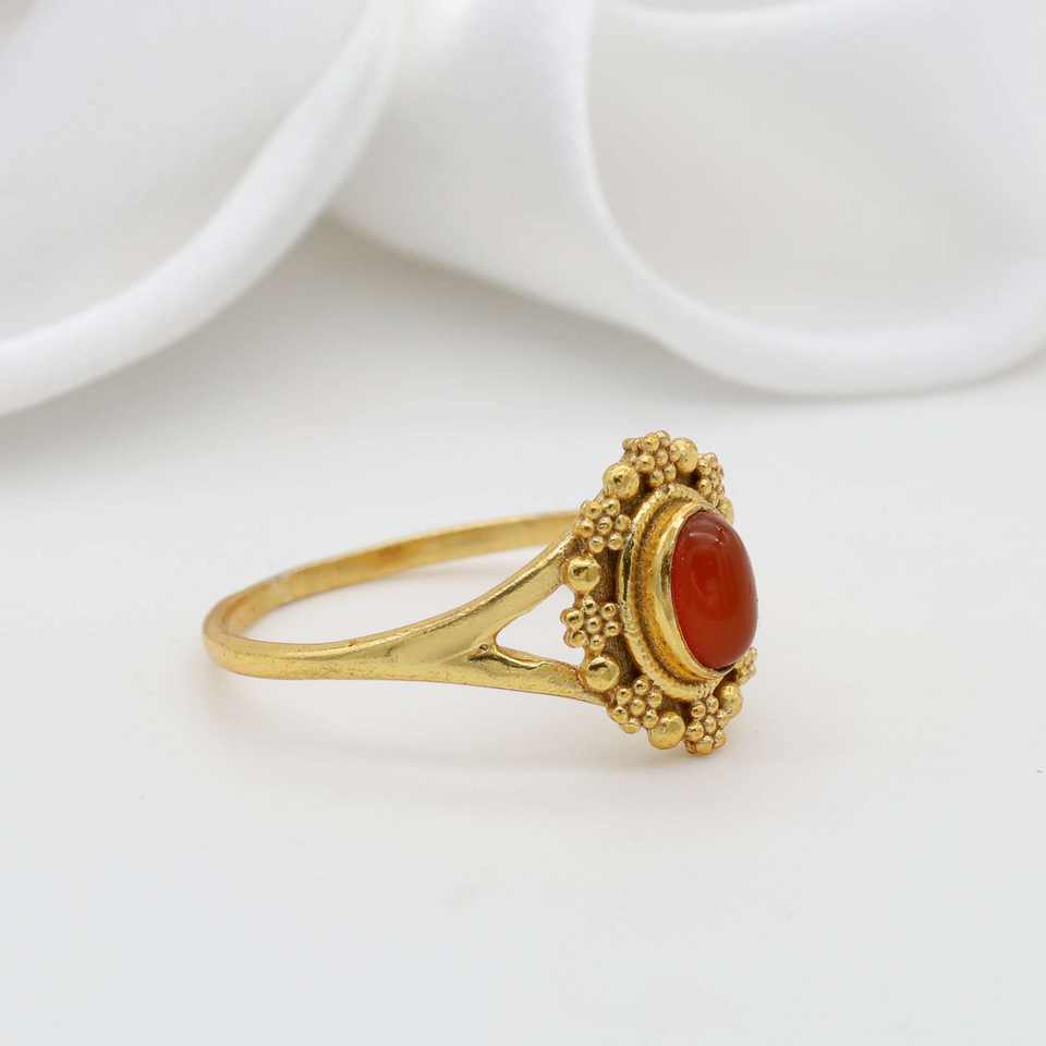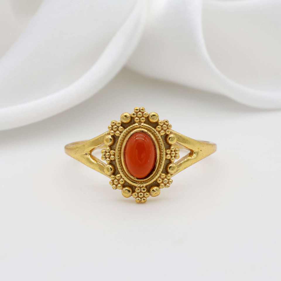 ปะการังแดงยอดนิยมทำด้วยมือแหวนอัญมณีโบฮีเมียนชุบทอง18K สำหรับผู้หญิงเครื่องประดับทองเหลืองของขวัญแต่งงาน