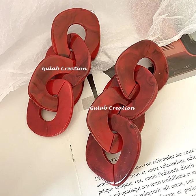ต่างหูโซ่อะคริลิครูปโซ่ต่อทรงเรขาคณิตสีแดงสุดอินเทรนด์น้ำหนักเบา7ซม. สำหรับผู้หญิงเครื่องประดับแฟชั่นงานแต่งงาน