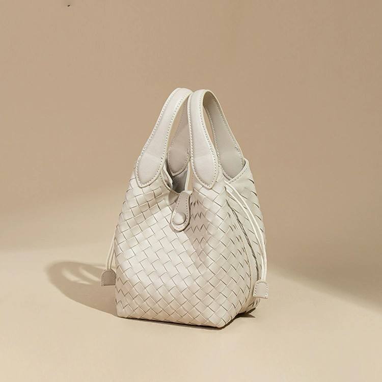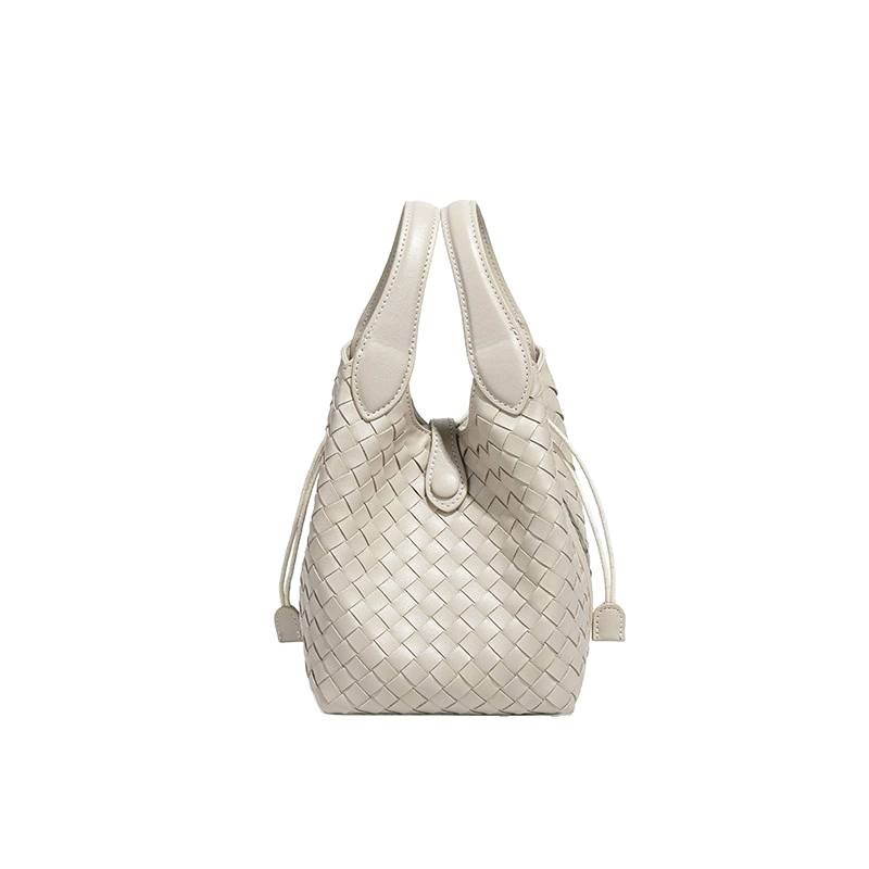 กระเป๋าสะพายข้างทรงเรโทรสุดฮิตสำหรับผู้หญิง ปิดด้วยเชือก วัสดุ PU ทอแบบถุง มีซับในโพลีเอสเตอร์ ขนาดกะทัดรัด 1-1.9 ลิตร เหมาะสำหรับการเดินทาง
