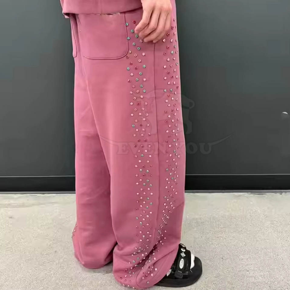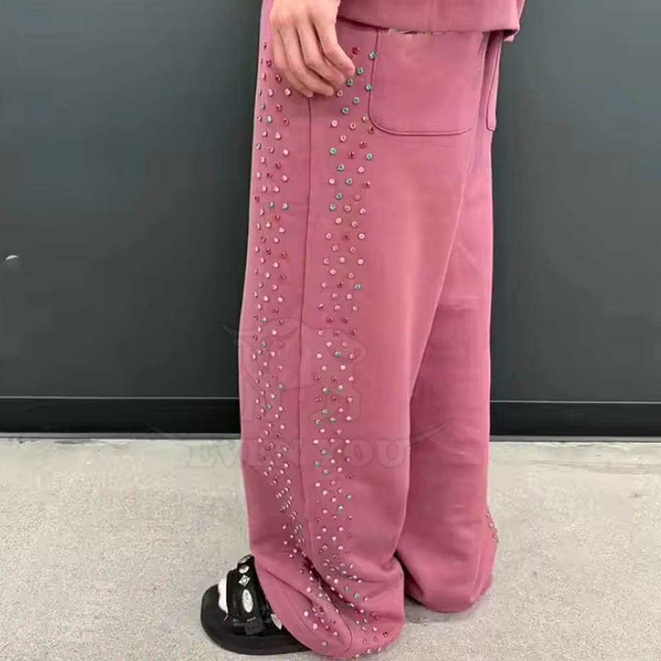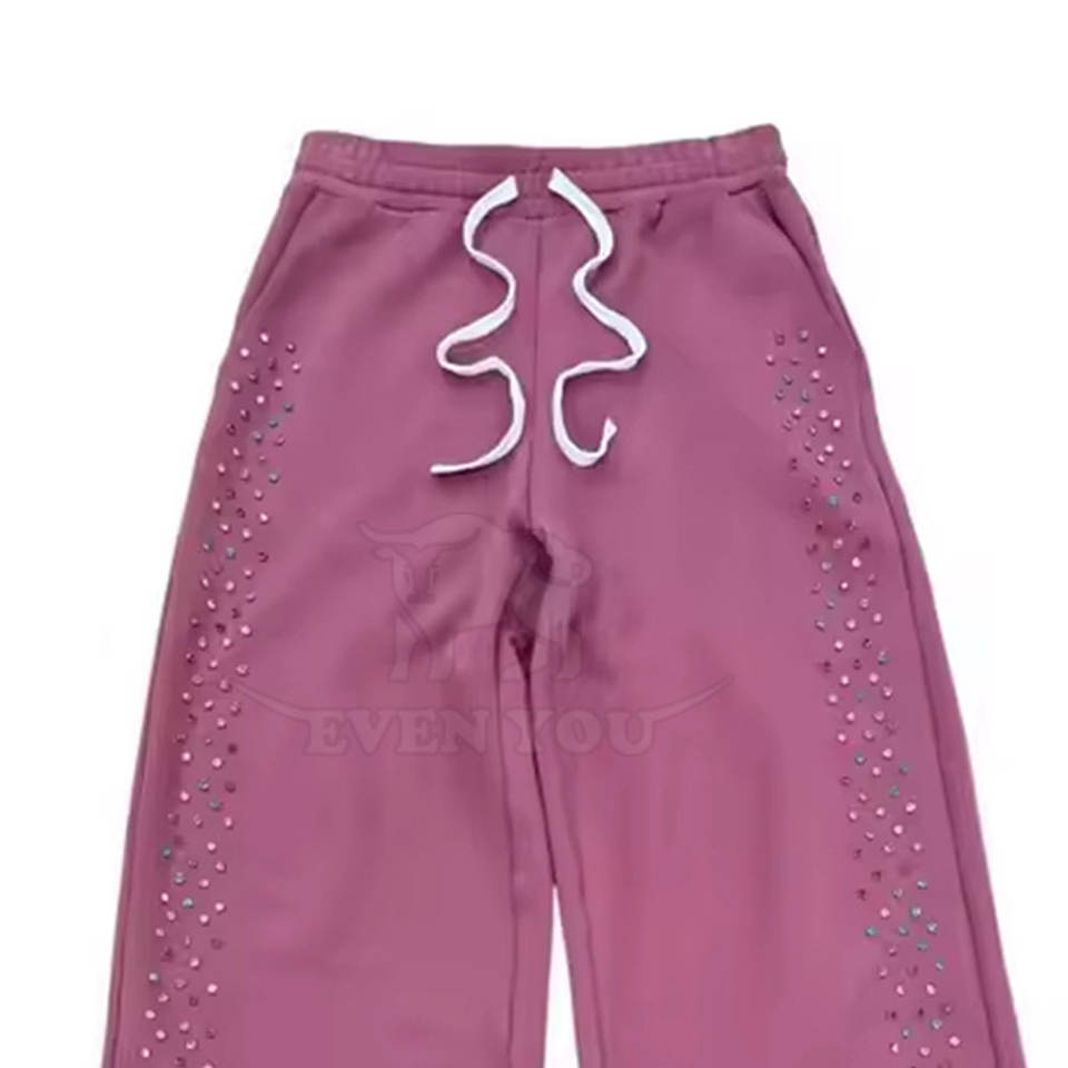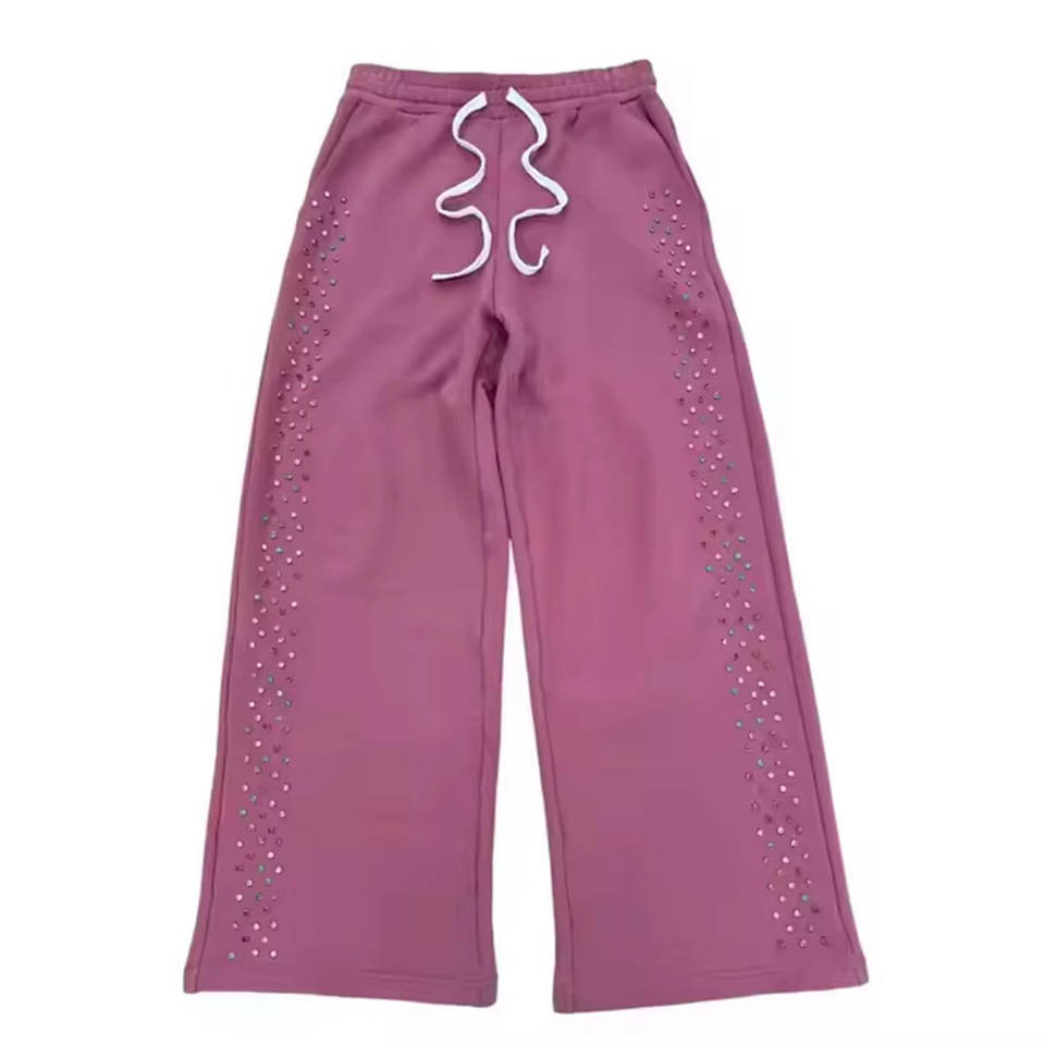 กางเกงวอร์มเทรนดี้ประดับเพชร ดีไซน์หินวิบวับ ผ้าฝ้ายนุ่มสบาย กางเกงจ็อกเกอร์แฟชั่นประดับเพชร