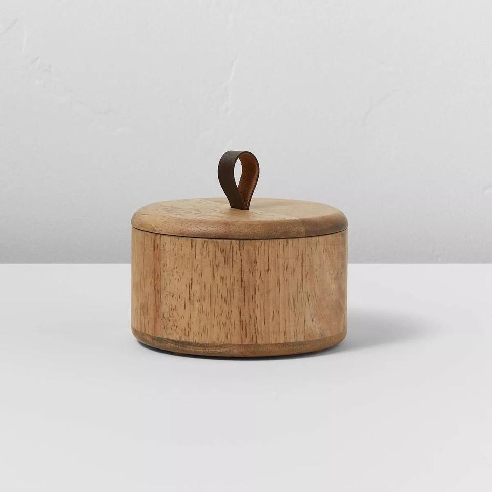 ชุดโหลเก็บของไม้ทรงกลมทันสมัย พร้อมฝาปิดแบบมีปุ่ม สำหรับจัดระเบียบครัว ตู้เก็บของ และเคาน์เตอร์อเนกประสงค์ ดีไซน์ธรรมชาติ