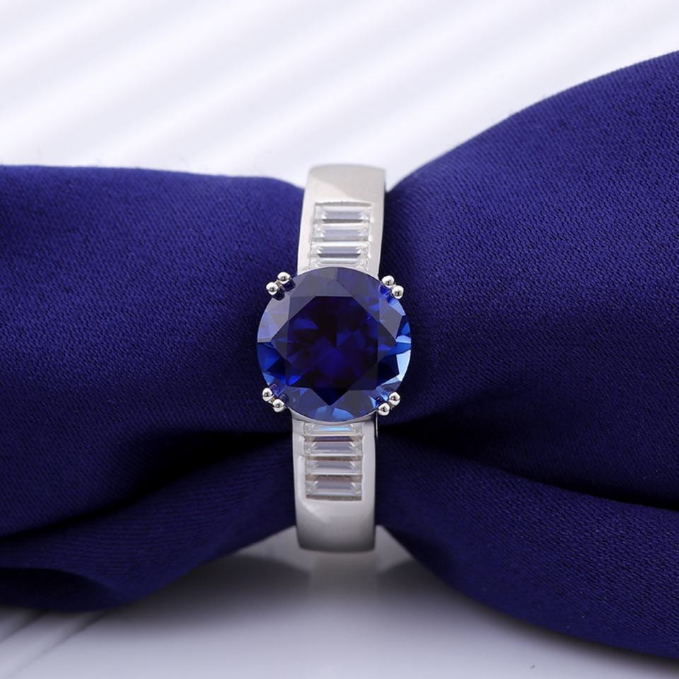 แหวนทองคำแท้ 18k 14k 10k ประดับพลอยทรงกลมสีน้ำเงินรอยัลสุดอินเทรนด์ เครื่องประดับชั้นดี แหวนทำมือ ออกแบบแหวนตามสั่ง ของขวัญวันวาเลนไทน์