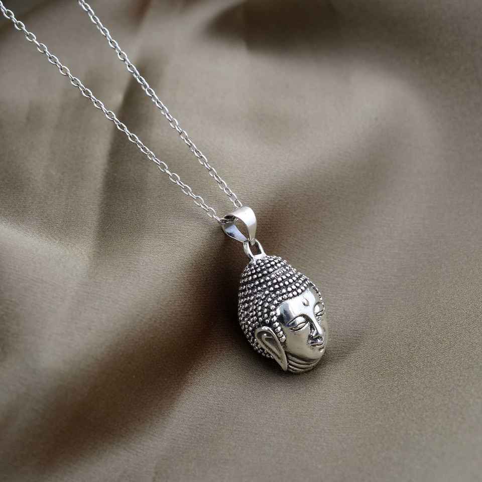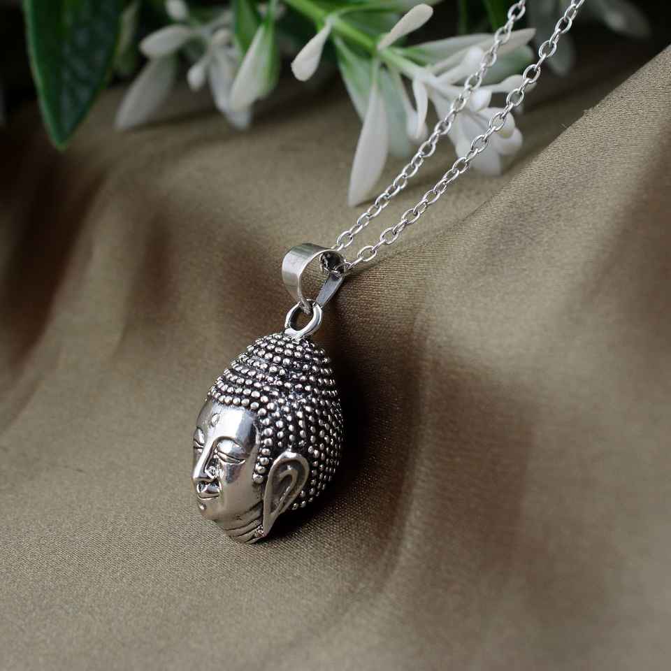 สร้อยคอจี้พระศรีศากยมุนีทันสมัยสามมิติสแตนเลสตัดรูปไข่สำหรับงานแต่งงานศาสนาพระพุทธเจ้า