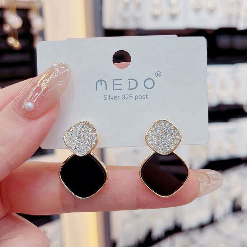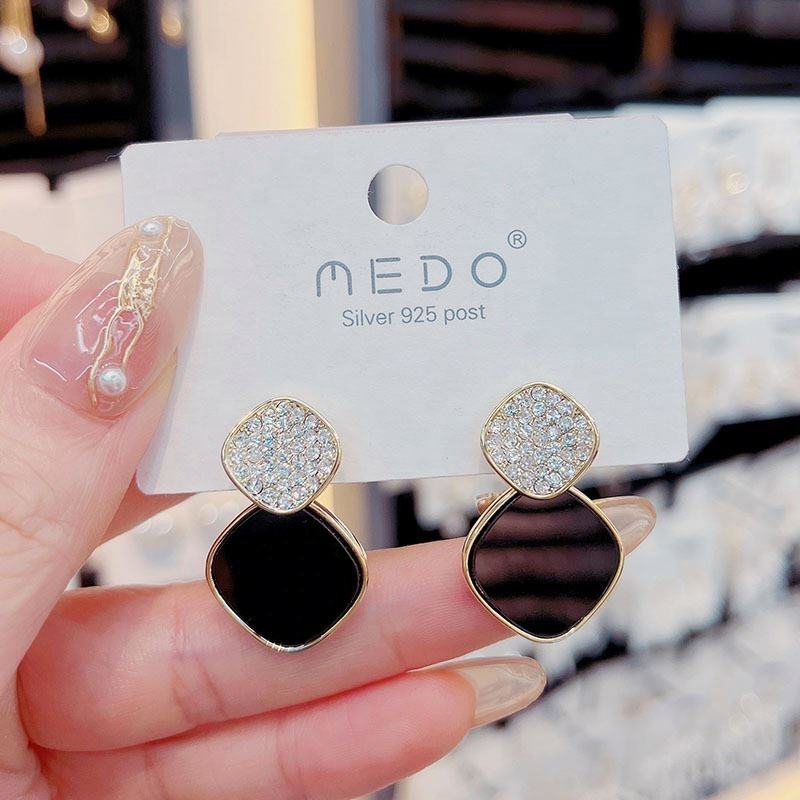 ต่างหูทรงสี่เหลี่ยมเรขาคณิตสีดำเรียบหรู ชุบทอง ทำจากโลหะผสมสังกะสี ประดับเพชรดีไซน์อเนกประสงค์ เหมาะสำหรับผู้หญิง เป็นของขวัญสำหรับงานปาร์ตี้