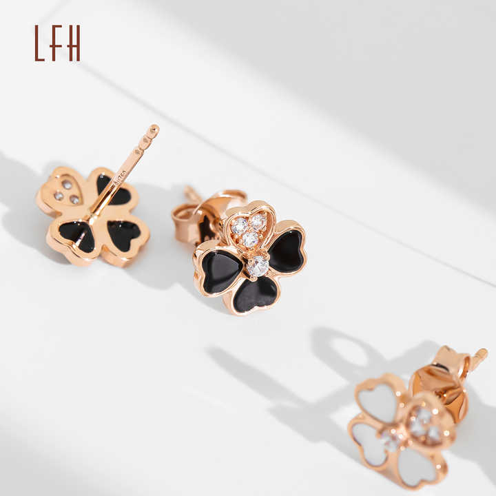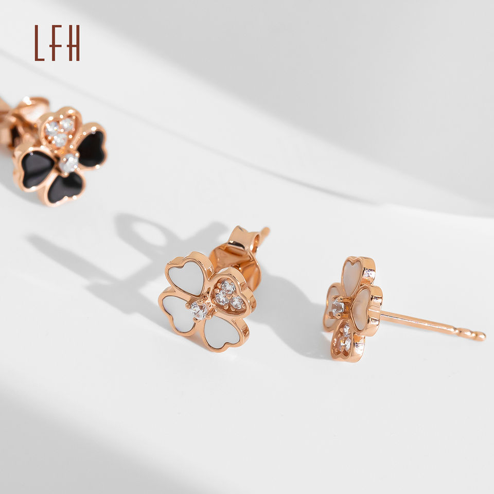ต่างหูรูปใบโคลเวอร์สี่แฉกแบบเรียบง่ายทันสมัยประดับด้วยเพทายสีทองแท้18K สำหรับผู้หญิงของขวัญงานปาร์ตี้งานหมั้น