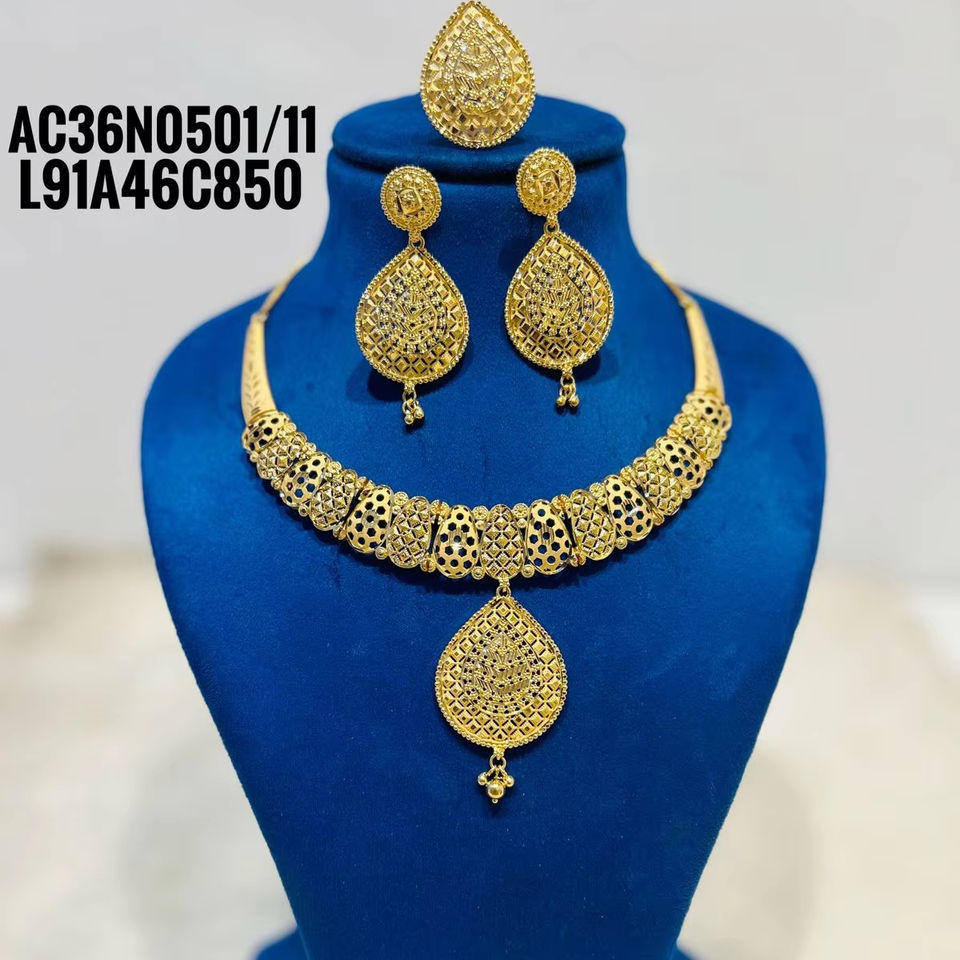 ชุดสร้อยคอสั้นและทันสมัยทันสมัยทันสมัยพร้อมต่างหูชุบทอง18K เครื่องประดับหนึ่งกรัมสำหรับผู้หญิง