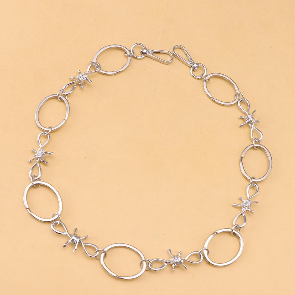 ห่วงโซ่กางเกงแบบมีหนามกลมแบบทันสมัยสายโซ่สีขาว K ห่วงสำหรับผู้หญิงอุปกรณ์เสริมผ้ายีนส์