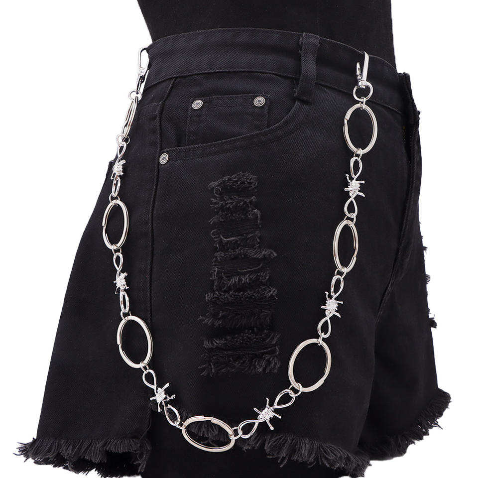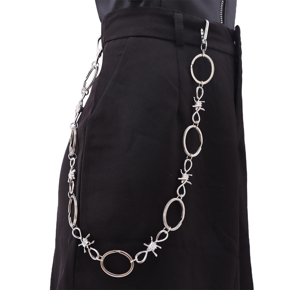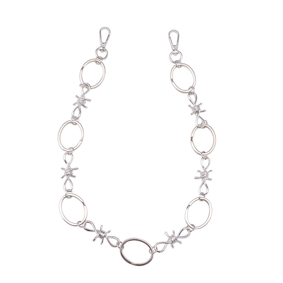 โซ่คาดเอวทรงกลมแบบชั้นเดียว ดีไซน์หนามแหลม วัสดุโลหะผสมสังกะสี สไตล์ฮิปฮอป สำหรับใส่กับกางเกงยีนส์ สีขาว K