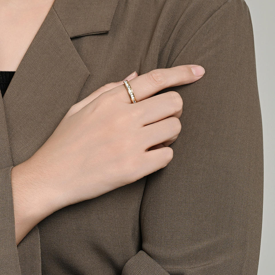 แหวนเพชรเส้นเดี่ยวสุดอินเทรนด์สำหรับผู้หญิง ไทเทเนียมสตีล สีโรสโกลด์ แหวนนิ้วก้อย แหวนนิ้วชี้ สวมใส่ได้ทุกวัน