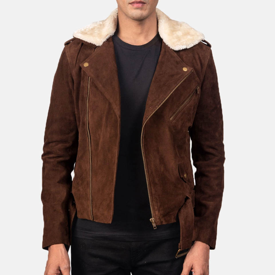 แจ็คเก็ตหนังเคลือบทรงเข้ารูปทันสมัยพร้อมปกตั้ง ดีไซน์คลาสสิกสไตล์วินเทจสำหรับผู้ชาย ผลิตจากวัสดุรักษ์โลก เหมาะสำหรับฤดูหนาว