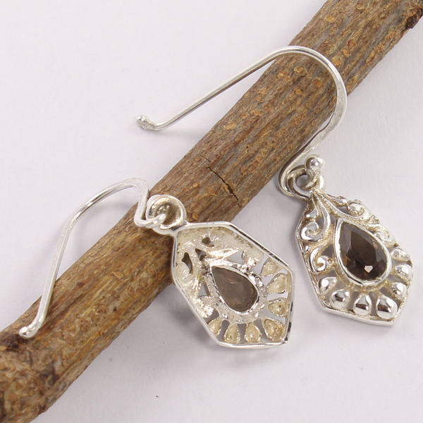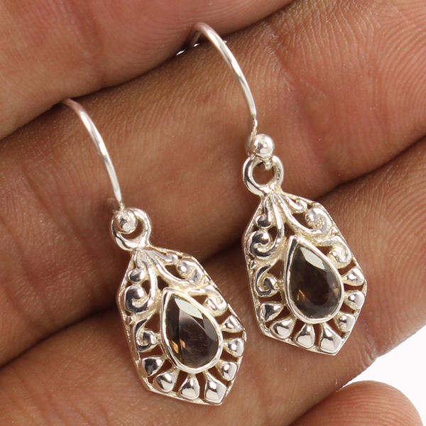 ต่างหูควอทซ์สโมคกี้ยอดนิยม925สเตอร์ลิงประดับอัญมณีทำด้วยมือต่างหูหรูหราต่างหูควอทซ์แบบสโมคกี้สำหรับผู้หญิง