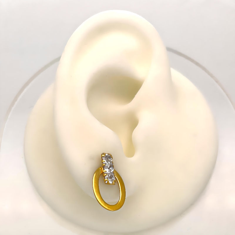ต่างหูแบบติดหูสไตล์สเปนสุดฮิต ประดับเพชรคิวบิกเซอร์โคเนียเกรด AAAAA ตัวเรือนทองคำขาว 14K แบบหนามเตย รับรองโดยบุคคลที่สาม ปราศจากนิกเกิลและสารตะกั่ว