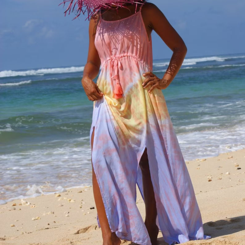 ชุดเดรสสตรีสไตล์ฮิปปี้,ชุดเดรสลำลองคอวีทรงหลวมทันสมัยใส่ได้ทุกโอกาสสำหรับฤดูร้อน